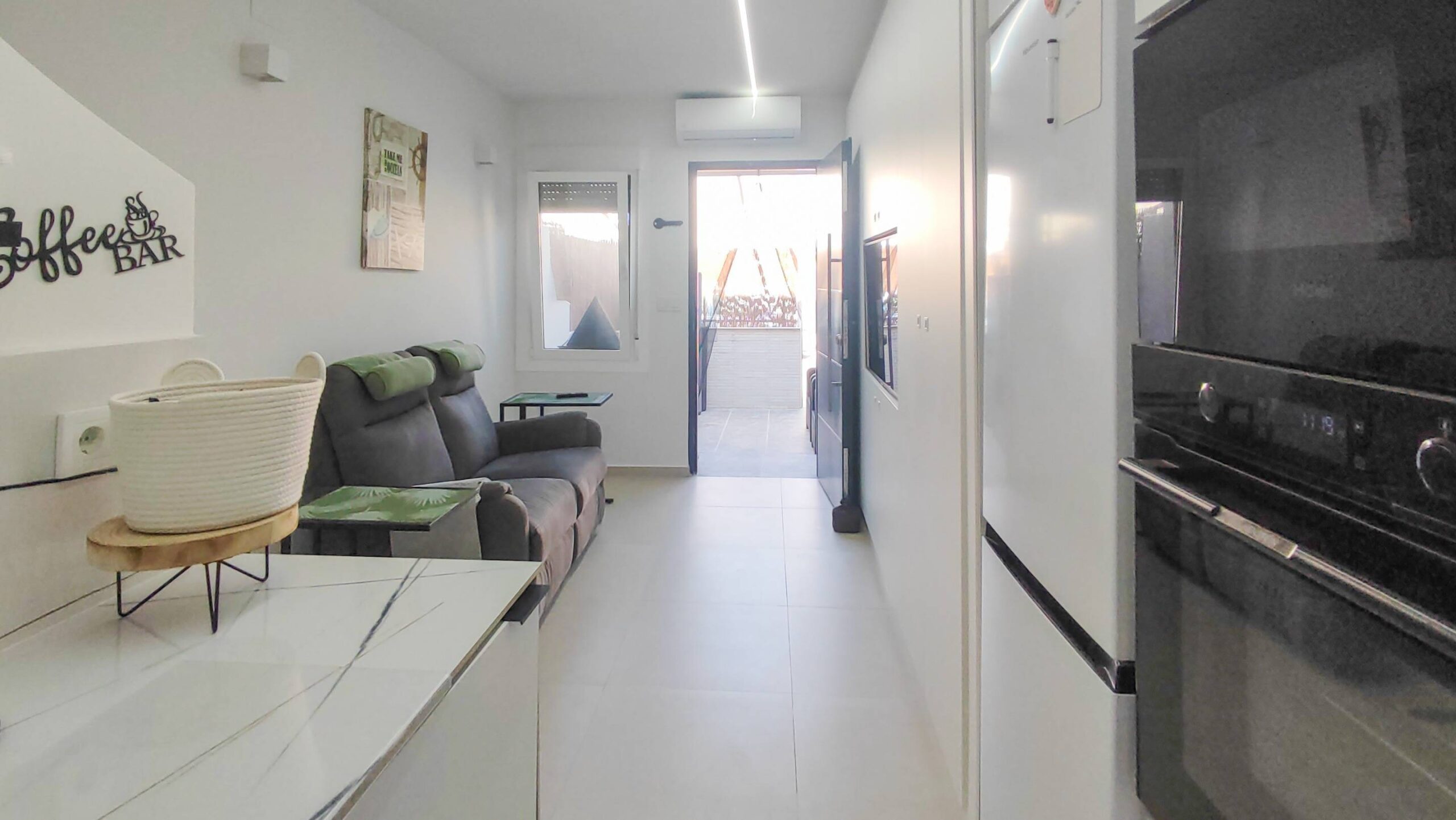 Este bungalow adosado, completamente reformado, te espera en Playa Lisa – Santa Pola, a solo unos pasos del Mediterráneo. Un hogar de 36 m² distribuidos en dos plantas, pensado para que cada rincón te haga sentir en paz.