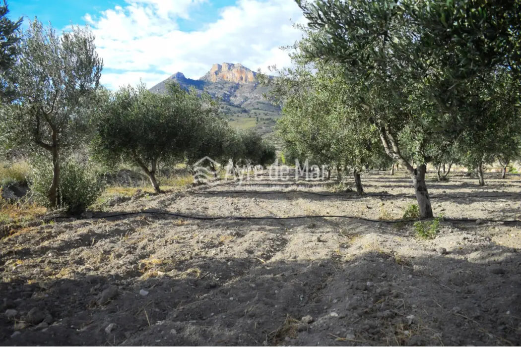 La vivienda se encuentra dentro de una parcela rústica de 6.400 m², con acceso directo por el camino y con dos horas cincuenta minutos de agua de cada tanda de la Fuente de Nuches. Contiene cultivo de olivos y árboles frutales. Luz y agua a pie de parcela.
