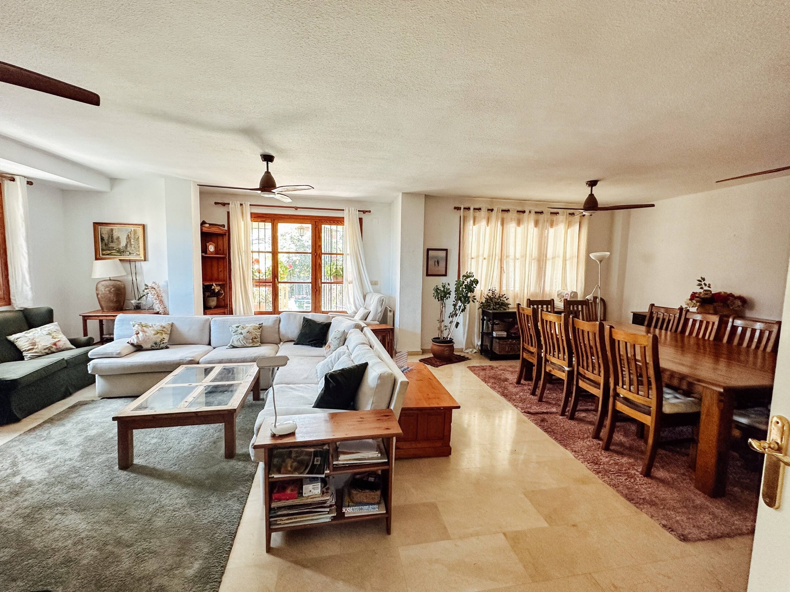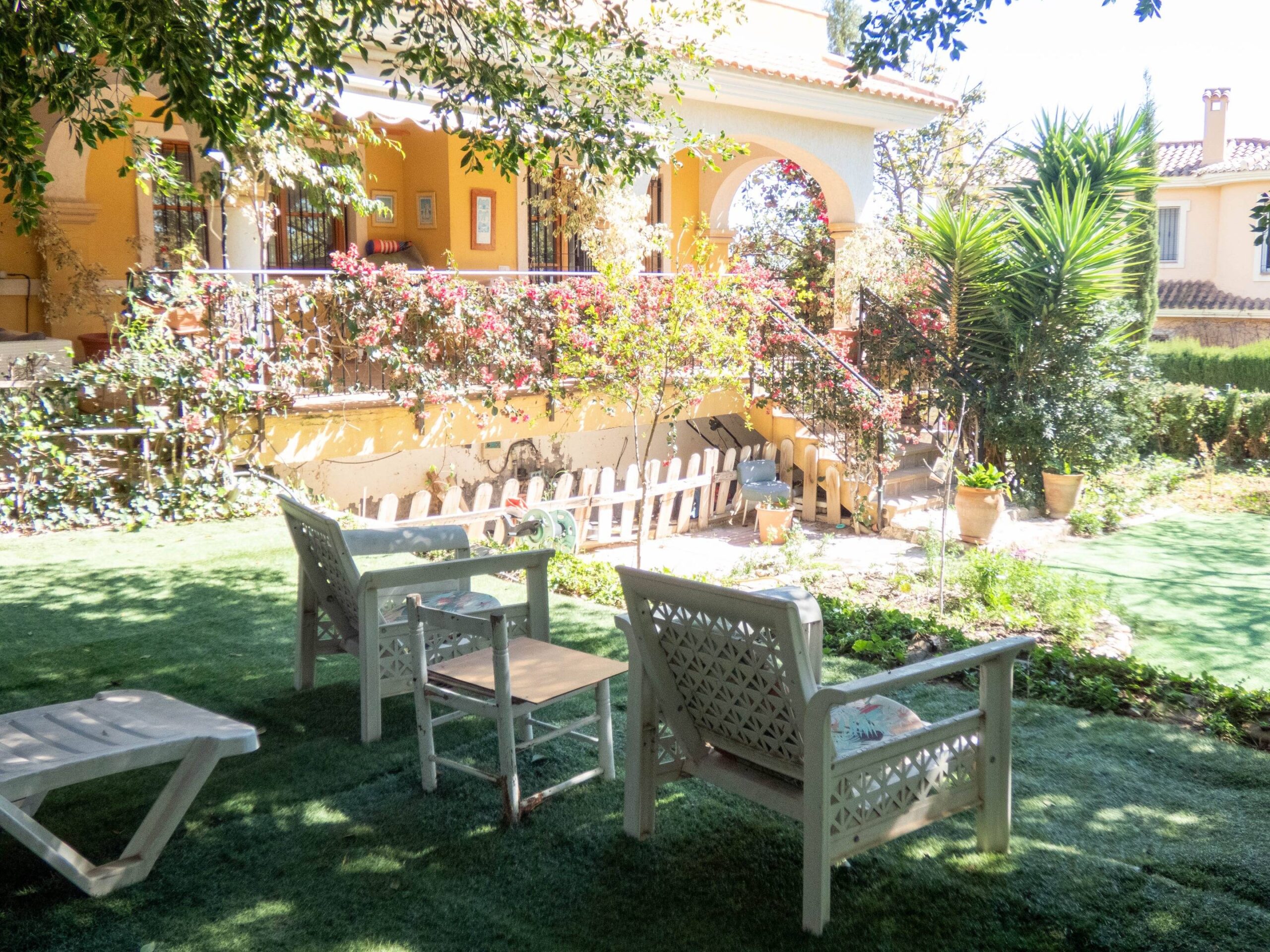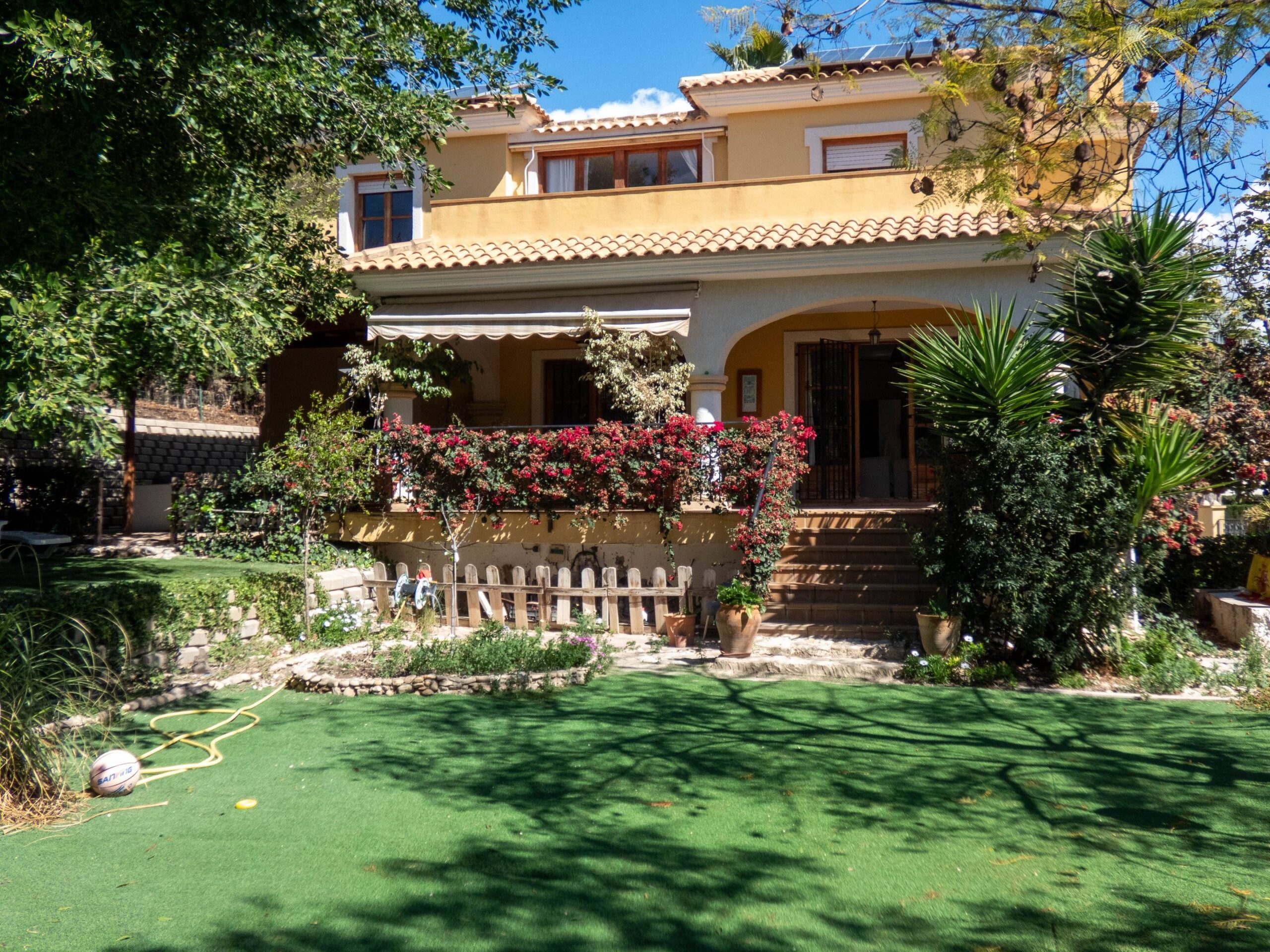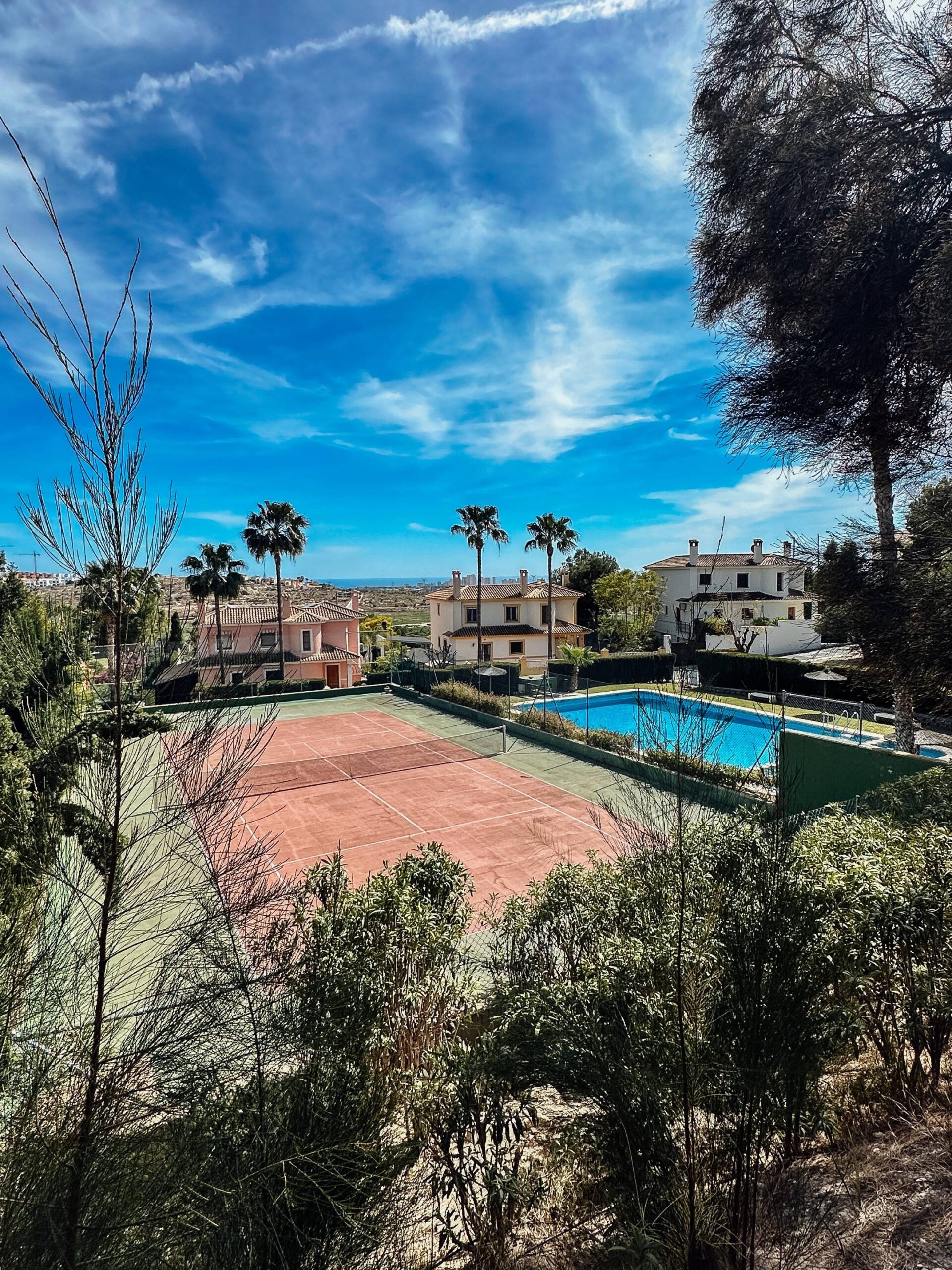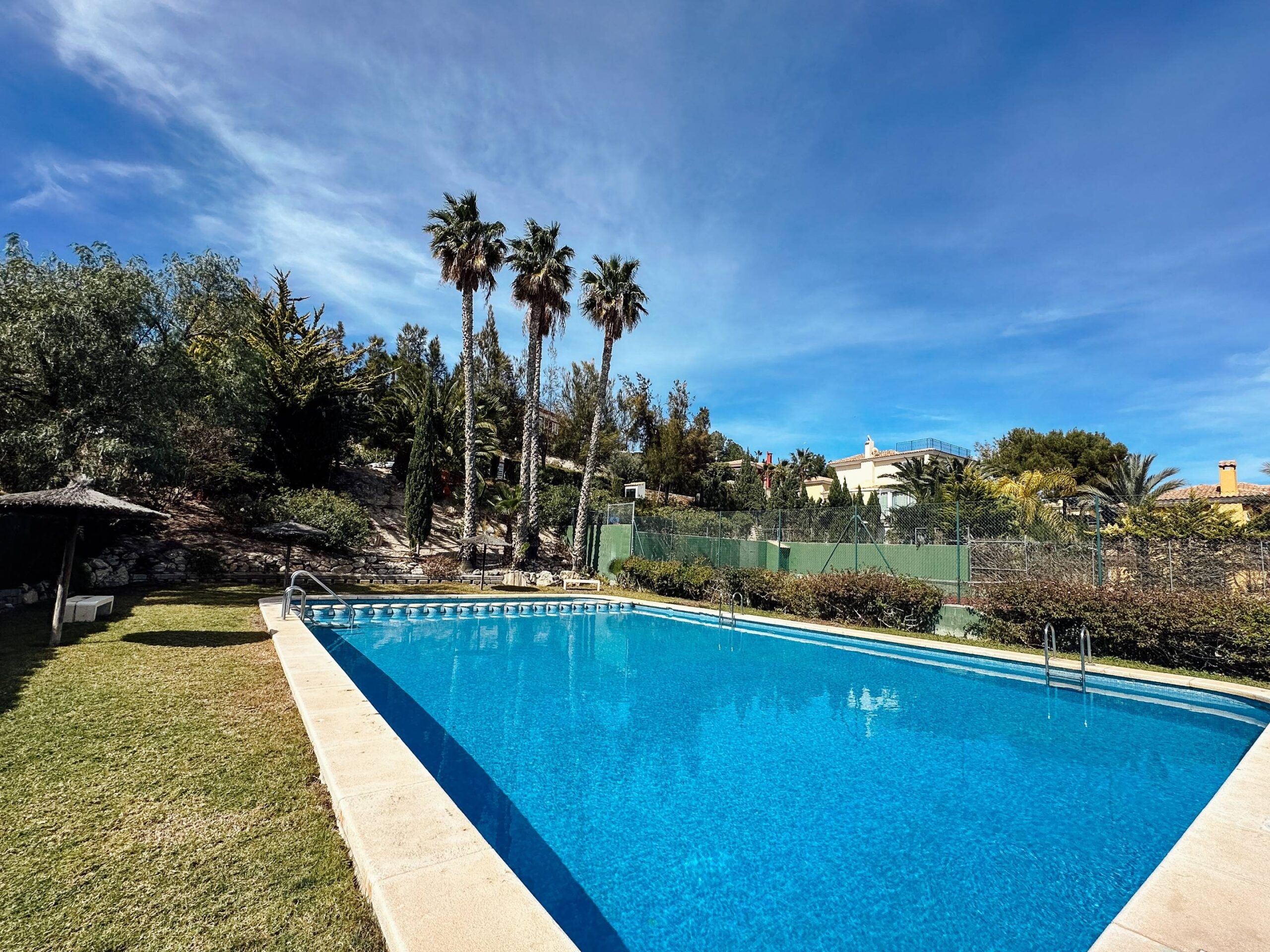 Ubicado dentro de una elegante urbanización con piscina y pista de tenis comunitarias, este chalet de dos plantas se asienta sobre una parcela de 752 m², brindándote espacio de sobra para disfrutar de un gran jardín privado, ideal para momentos al aire libre, reuniones familiares o simplemente relajarte bajo el sol del Mediterráneo.