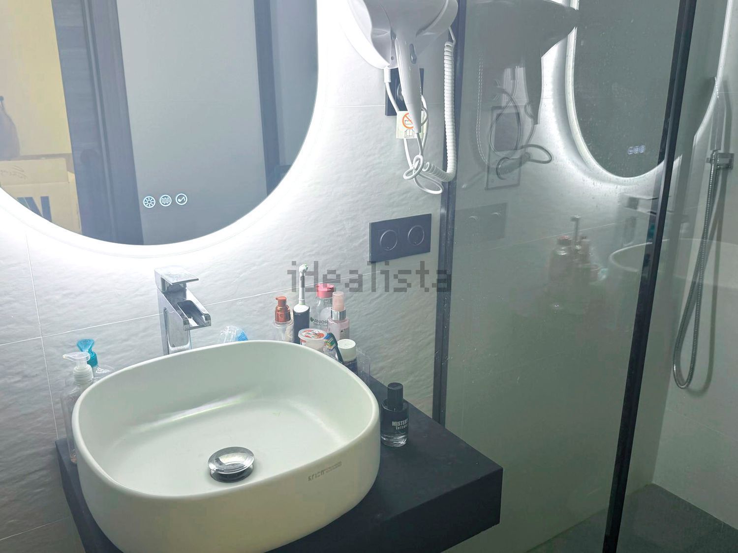 El cuarto de baño está diseñado con inodoro suspendido con jet shower, lavabo Porcelanosa de diseño espejo digital, ventana exterior para una ventilación óptima, radiador toallero y secador de pelo integrados en pared, ducha doble de obra, con lluvia de techo con mandos sofisticados y calentador Bosch de 80 litros recién comprado.