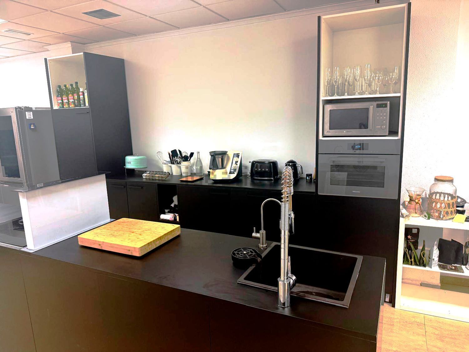 Cuenta con una innovadora cocina con una original isla que incluye campana extractora inferior, grifo suplementario de agua filtrada, lava vasos, triturador de alimentos y enchufes integrados, contraisla y coffee corner. Recién diseñada con criterios ergonómicos, salón y despacho flexibles y una zona multiusos.
