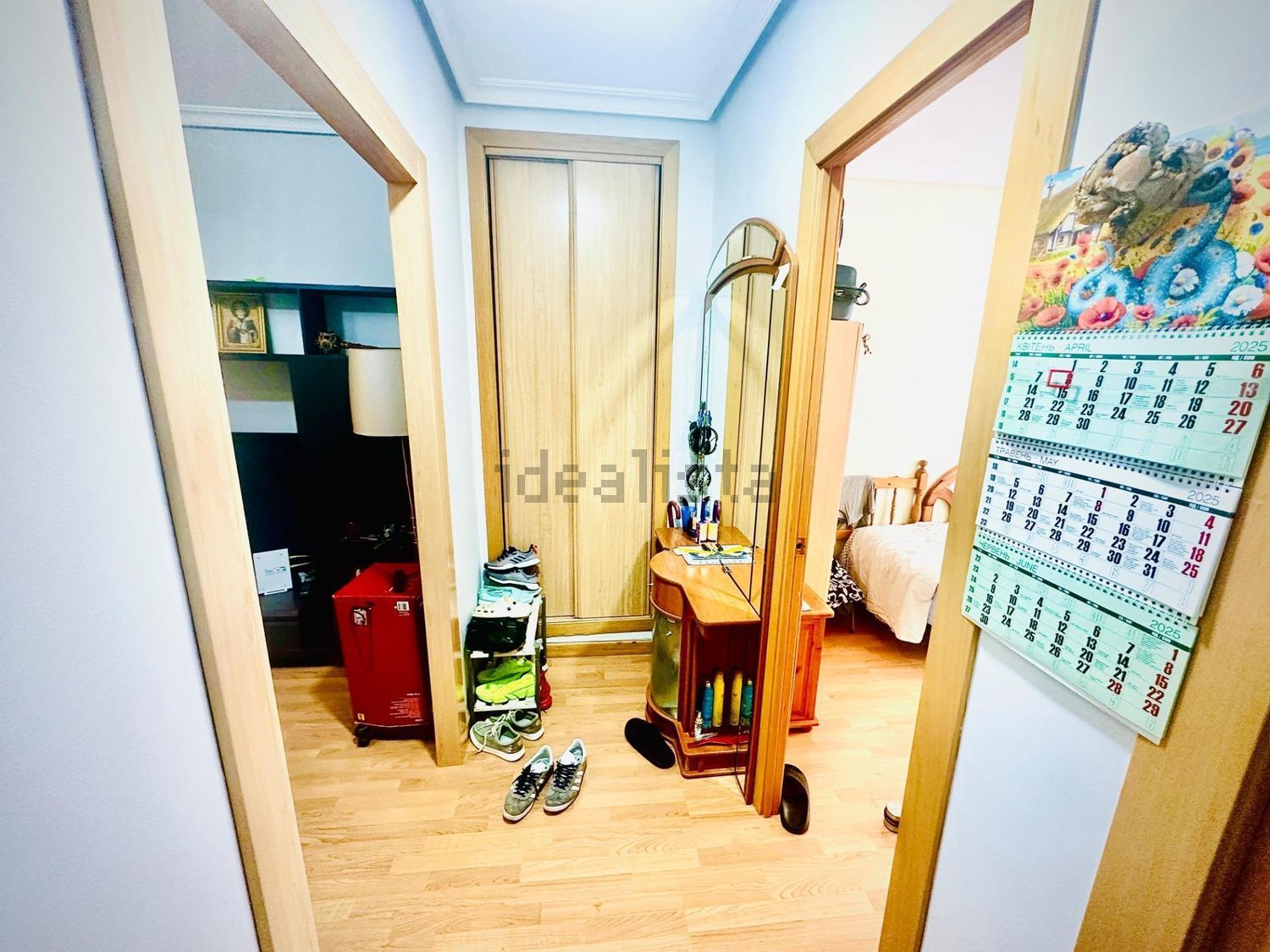 El apartamento está situado en el primer piso y tiene una superficie total de 85 metros cuadrados. Tiene tres dormitorios separados, cada uno con amplios armarios para guardar cosas. El amplio salón con zona de TV se combina con una cocina americana totalmente equipada. El baño dispone de cabina de ducha.