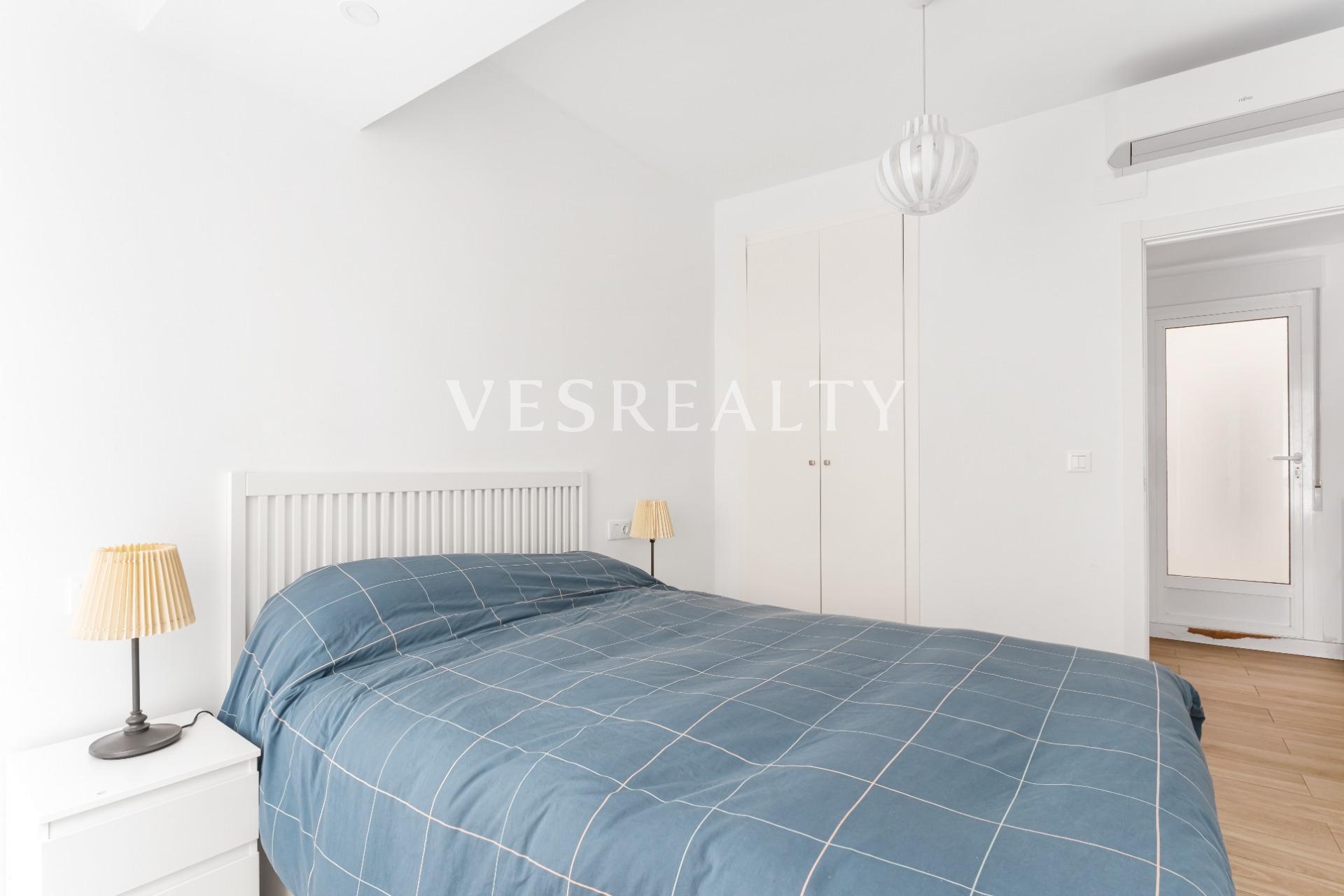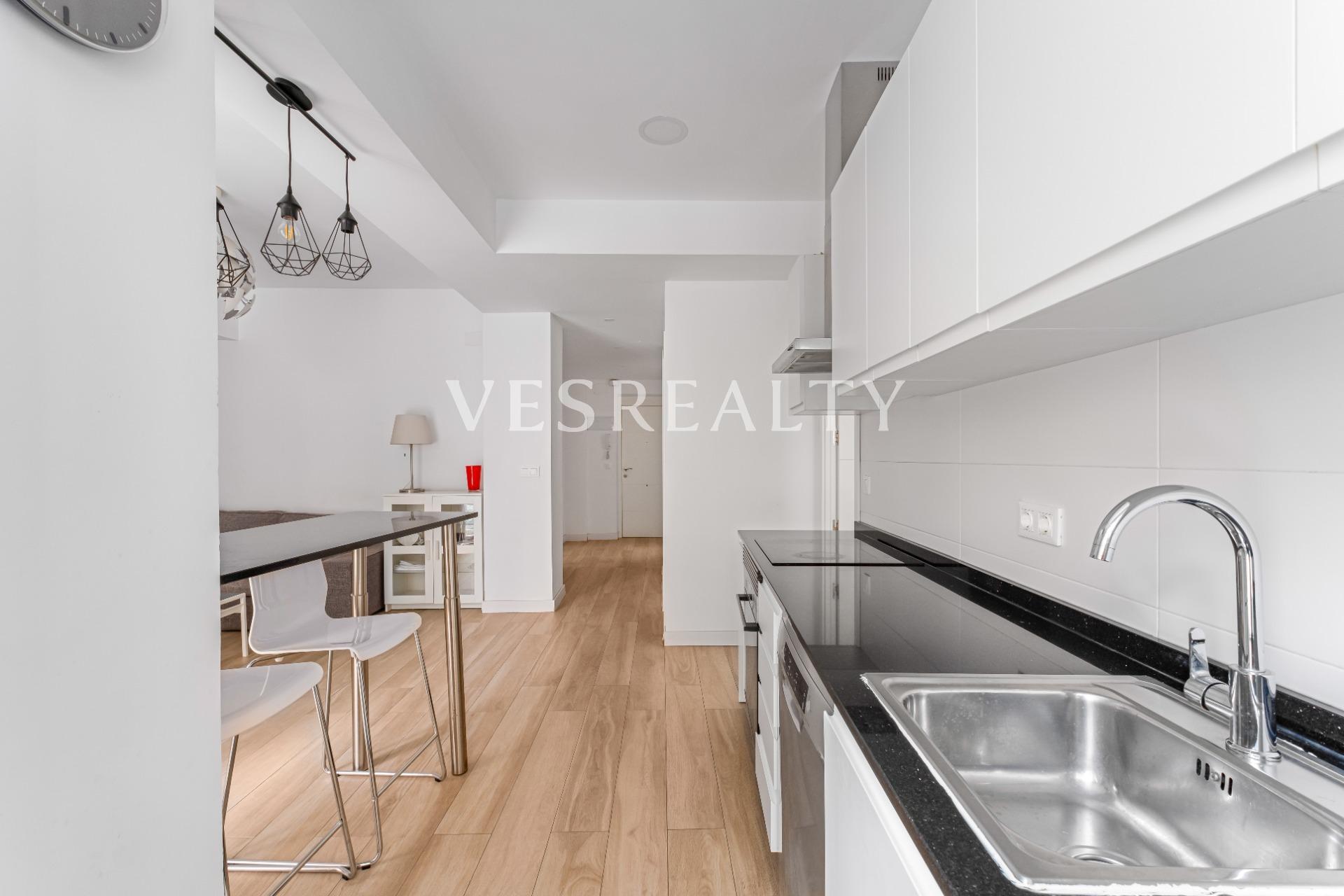 La cocina americana se integra perfectamente al salón, creando un espacio abierto y acogedor. Además, cuenta con un balcón y un patio interior, perfectos para disfrutar de la luz natural y el aire libre.