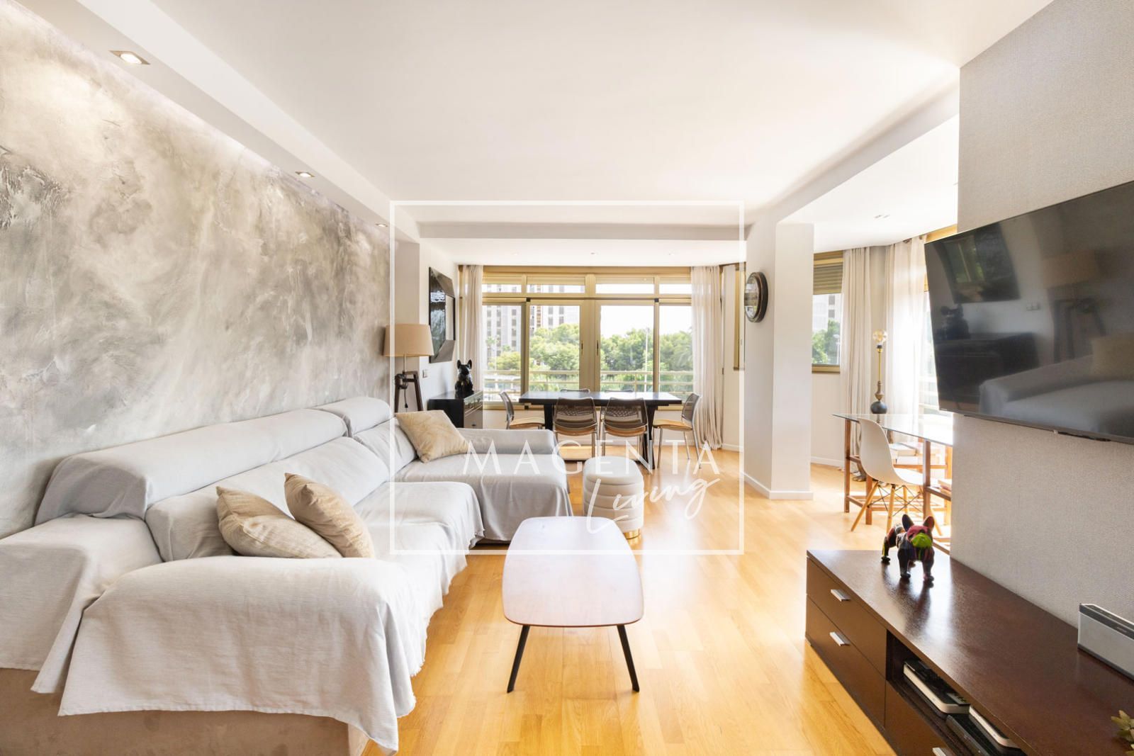 Reformada en años recientes, la vivienda ofrece espacios amplios, pues se han integrado las terrazas de las que originalmente disponía.