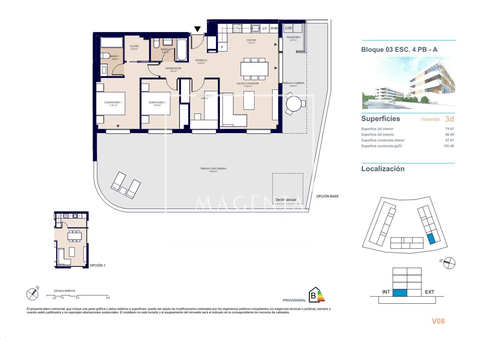 El residencial en el que se encuentra el piso está formado por 35 viviendas de obra nueva, posee en sus zonas comunes espacios para la convivencia, la relajación y el deporte. Cuenta con una exclusiva piscina exterior infinity y un solárium, además de un gimnasio completamente equipado.